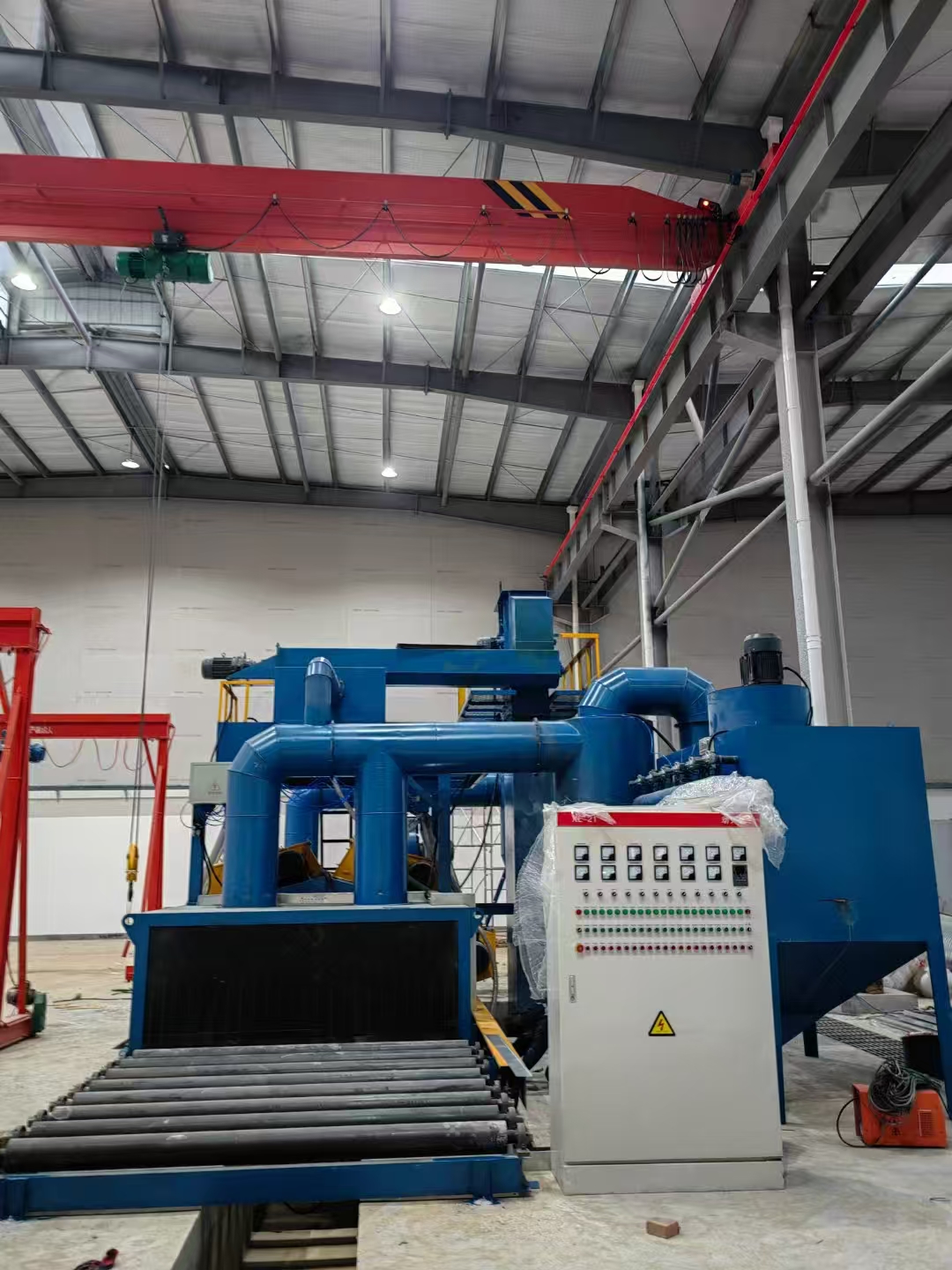 鋼結(jié)構(gòu)輥道通過式拋丸機(jī)現(xiàn)場(chǎng)調(diào)試